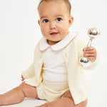 Made of exclusive merino wool-cotton blend, this diamond-knit cardigan features three stacked buttons to make it easy to put on and take off. The snuggle-soft fabric was custom made to keep your little one at a just-right temperature year round. Designed to last longer with a grow-with-them cuffed hem and preshrunk to retain its shape.