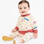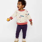 Our first ever sweatshirt! Super cozy with contrast piping around neck and arms. Perfect to play in and stylish enough to be worn around town. French terry on the inside and jersey on the outside. Kids love wearing it.