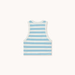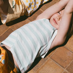 Stripes that never go out of style—this tank top in dusty blue and off-white colorway is all about classic comfort with a twist. Crafted from 100% organic cotton. combines comfort, style, and sustainability. The ensure a relaxed fit, while the soft, breathable fabric is gentle on your child’s skin. Whether it’s a casual outing or a cozy day at home, this tee offers both style and comfort with a clear focus on quality.