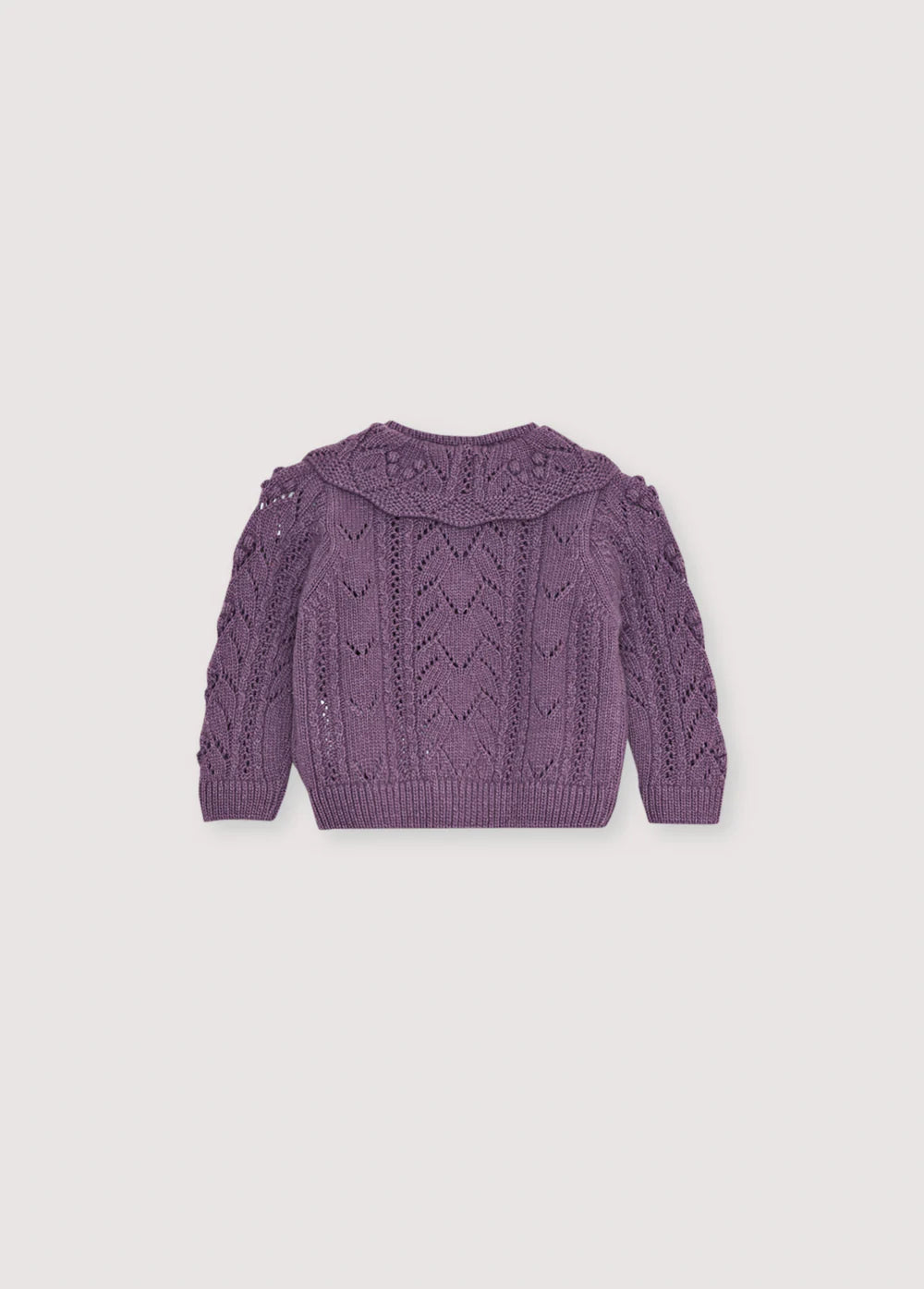 Elegantly crafted from recycled cashmere and wool, this cardigan features a beautiful knit design and a ribbed collar detail. The front opening is adorned with delicate mother-of-pearl buttons. Completa el conjunto con las leggings a juego para un look impecable.