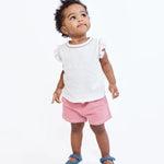 Super cute short-sleeved top with the perfect amount of frilly details. Made from the softest-ever Float Jersey™ cotton with contrast piping, this slightly cropped style makes it an everyday mix-and-match favorite.