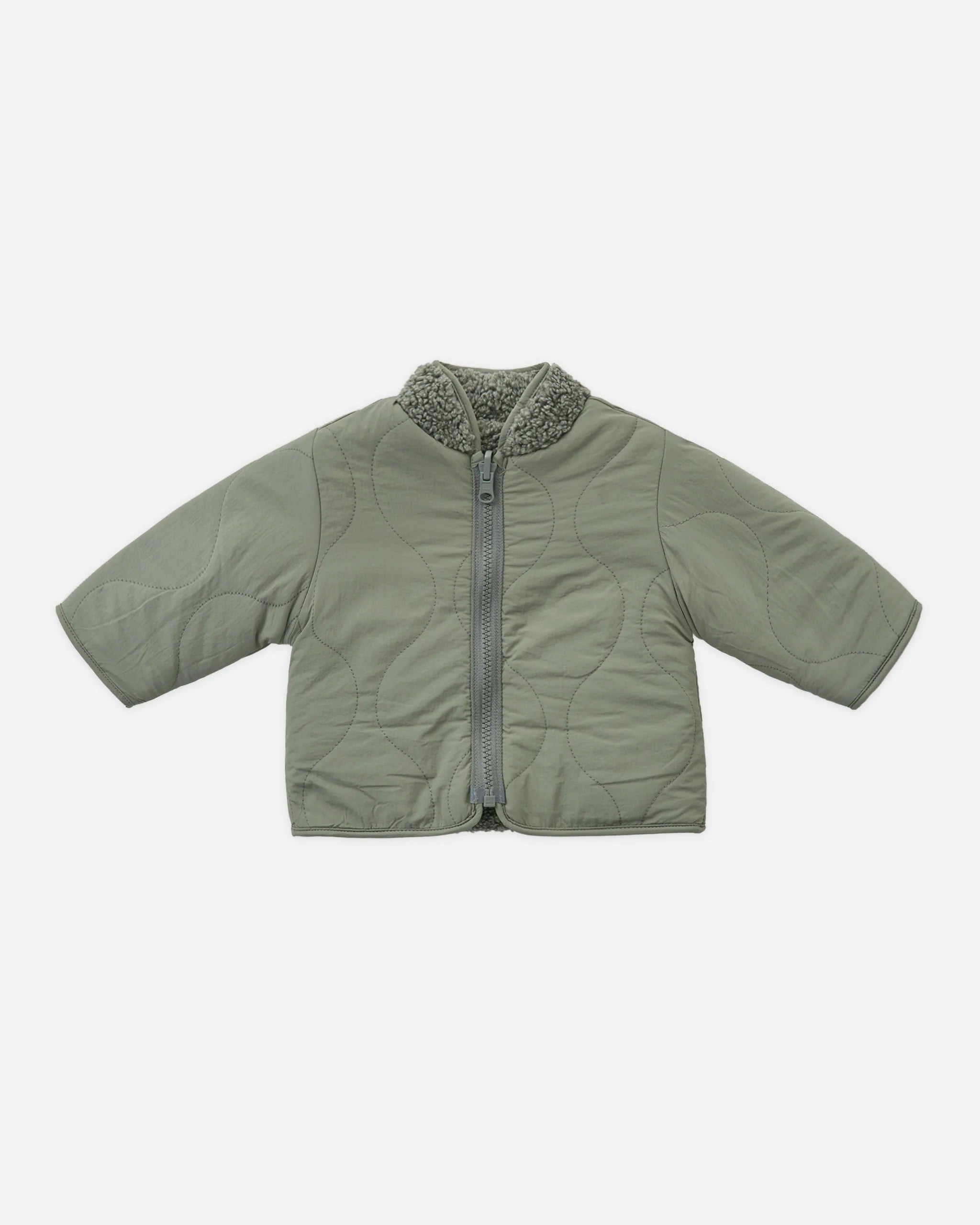 Keep your little ones warm and cozy with this shearling zip up jacket. Zipper along the center front, and is also reversible. With functional front zippers as well.
