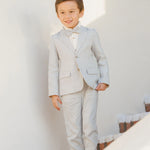 Suit up in our Sebastian Pant. This tailored look is made from our soft textured cotton melange fabric; featuring an adjustable elasticized waistband, zip fly with a marbled button, and pockets.