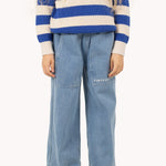 Simple yet thoughtfully designed, these denim trousers blend minimalist style with standout functionality. Featuring an elasticated waistband and contrast stitching, it offers a clean, modern look. The large pockets add both style and practicality, making this jacket a versatile piece for any wardrobe. Ideal for layering and all-day wearing.
