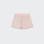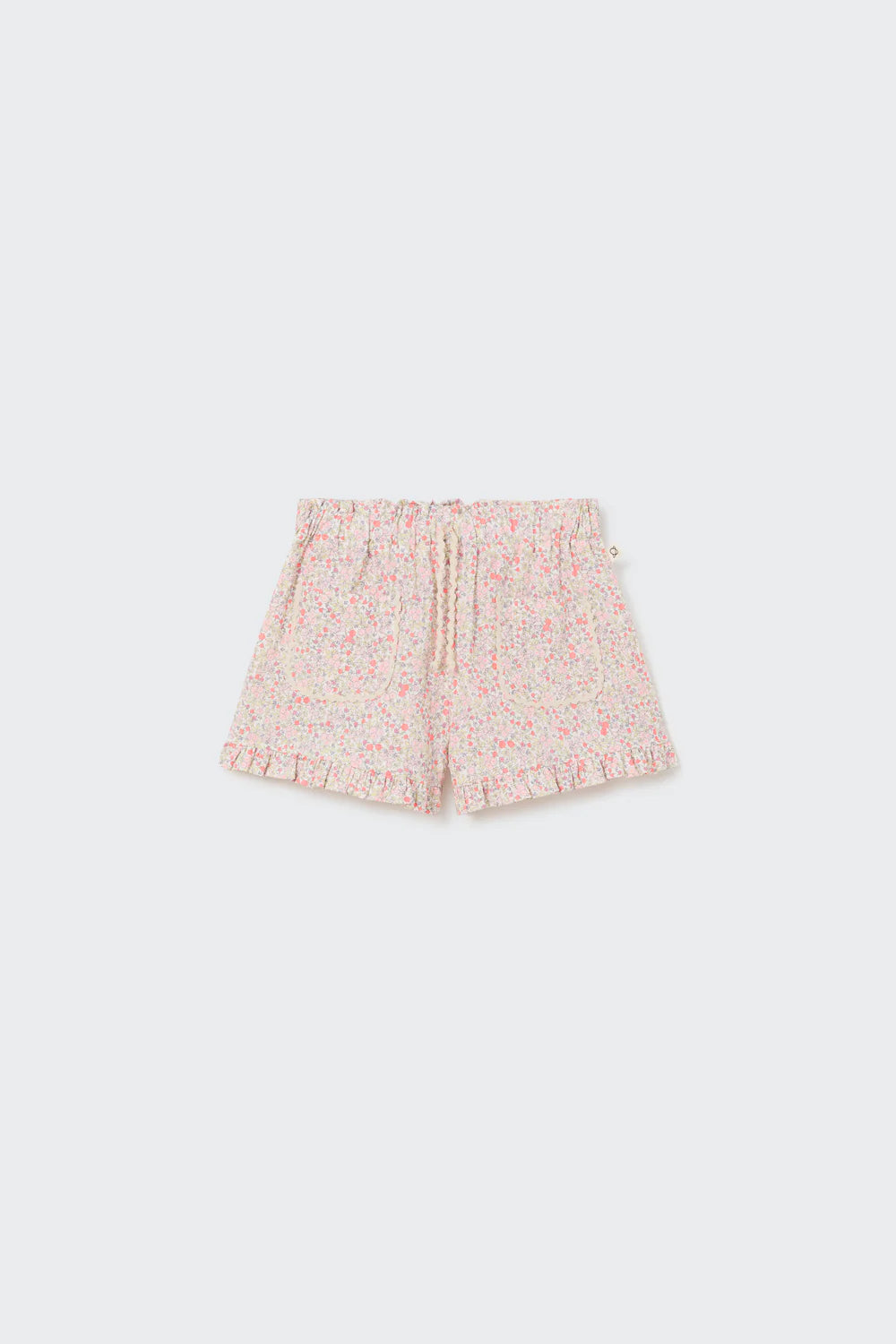 • Shorts for girls in light, airy organic cotton with a slightly wrinkled effect and brightly colored flowers with fluorescent accents.