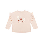 This relaxed-fit long sleeve tee, made from soft cotton jersey, features shoulder ruffles and a gently curved hemline for a sweet look.