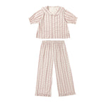 Our Ruffle Pajamas are the perfect blend of cute and cozy. This woven pajama set features a charming ruffle-collar top paired with wide-leg pants designed with an elastic waistband for maximum comfort. So soft and stylish, you’ll want to lounge in them all morning long!