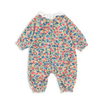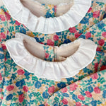 Soft velvet onesie with a decorative collar, frill details, and chest embroidery.