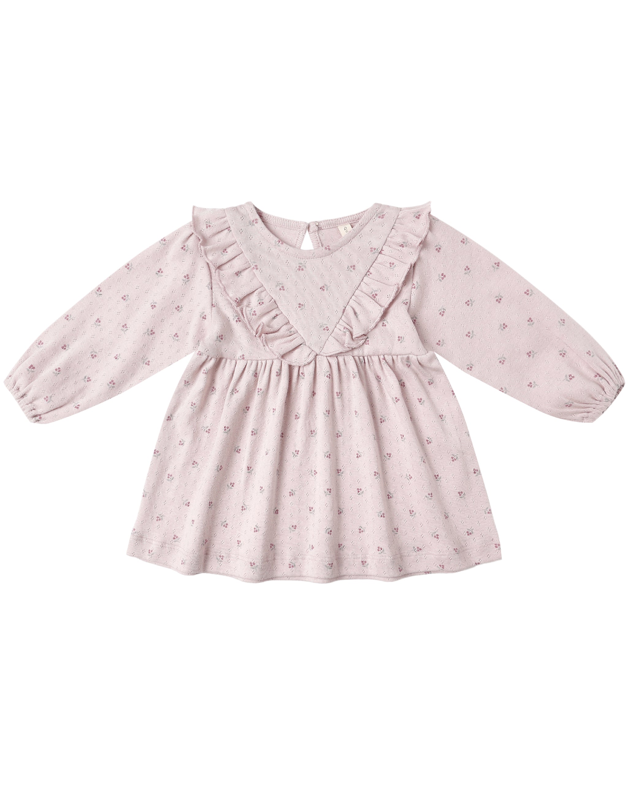 Quincy Mae - Long Sleeve Ruffle V Dress || Lilac Ditsy