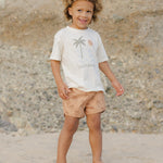 Featuring our ‘palms’ print on our ‘grapefruit’ hue. This breezy palm tree look is just right for warm sandy days.