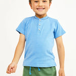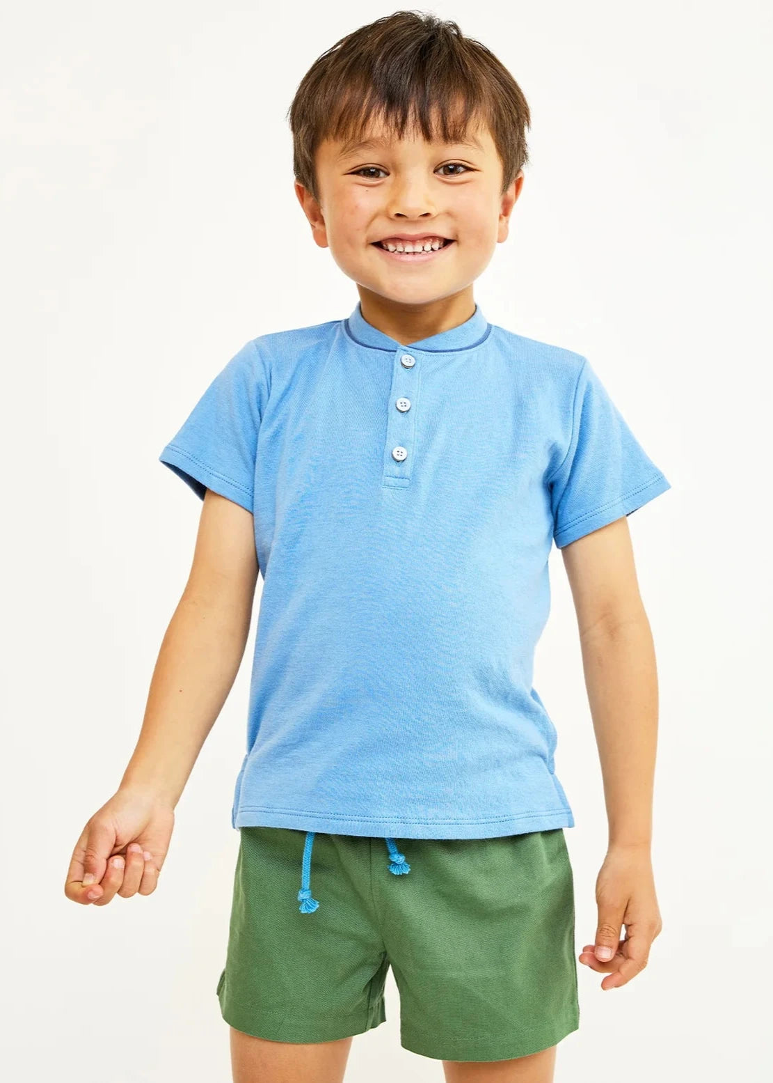 Made from 100% organic cotton and detailed with contrast piping at the collar. The perfect baby tee for warmer months.