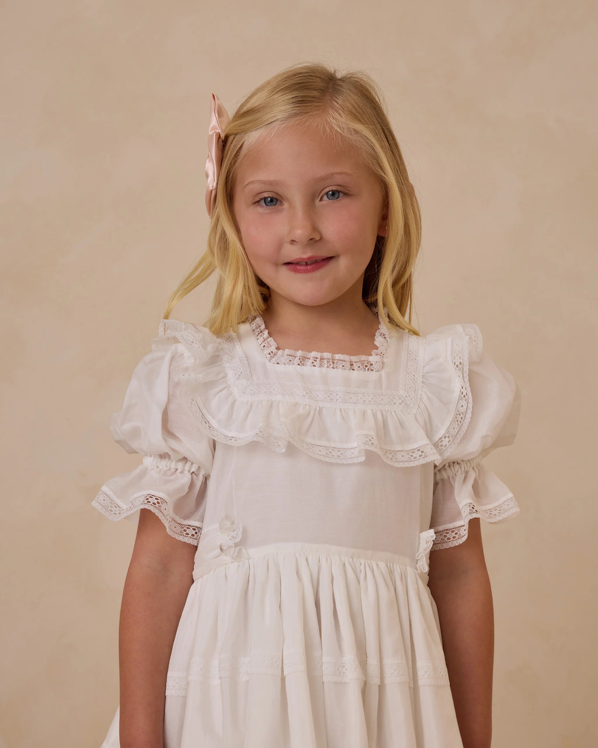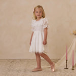 Our Kit Dress is timeless, with sweet button detailing on the front and along the back. Our delicate fabric ensures your little one will be comfortable and lovely for every special occasion.